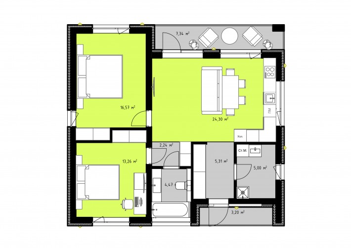 • Общая площадь 71 м2