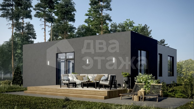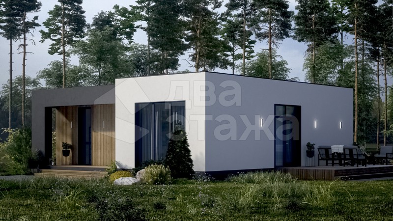 Одноэтажный просторный дом с плоской кровлей в современном минималистичном стиле площадью 85 кв.м
