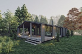 Каркасная технология PREFAB. Доставляют на место стеновые панели, собирают за 5-7 дней.